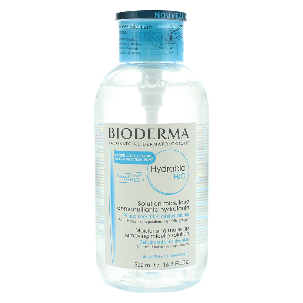 Bioderma Hydrabio H2O Make-Up Remover 500ml Pump•A dermatological micellar water for dehydrated sensitive skin that cleanses, removes make-up and moisturises the skin leaving it soft and glowy.