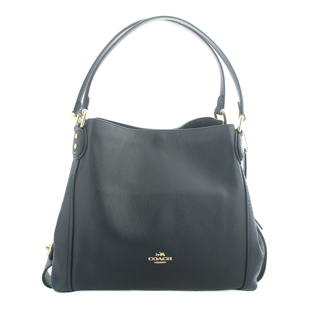 Coach Edie 31 Pebbled Leather Navy Shoulder Bag•Coach Edie 31 Pebbled Leather Navy Shoulder Bag has been crafted from luxurious polished pebble leather.• The main compartment has three fully lined sections the middle one is zip...