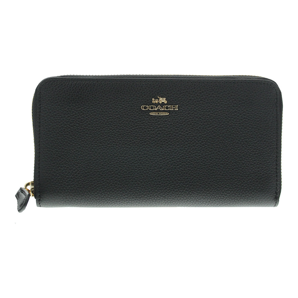 Coach Accordion Black Zip Wallet•The Accordion Black Zip Wallet from Coach is a luxurious wallet made of polished pebble leather.• The wallet has an Accordion style design, allowing it to be much, much more spacious than it loo...
