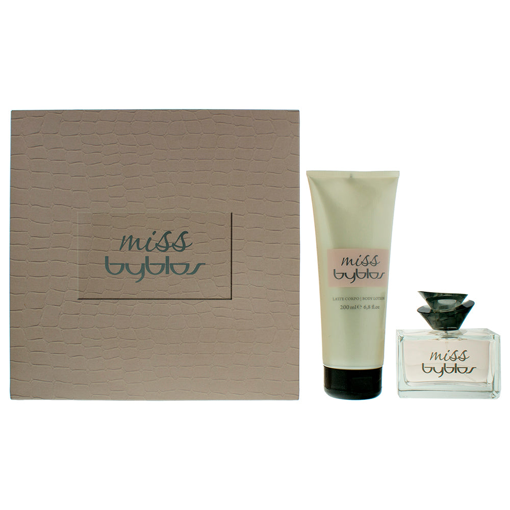 Byblos Miss Byblos Eau de Parfum Gift Set : Eau de Parfum 100ml - Body Lotion 200ml•Miss Byblos by Byblos is a floral fragrance for women.• Top notes are Neroli mandarin orange and pink pepper.• Middle notes are tuberose lilyof...