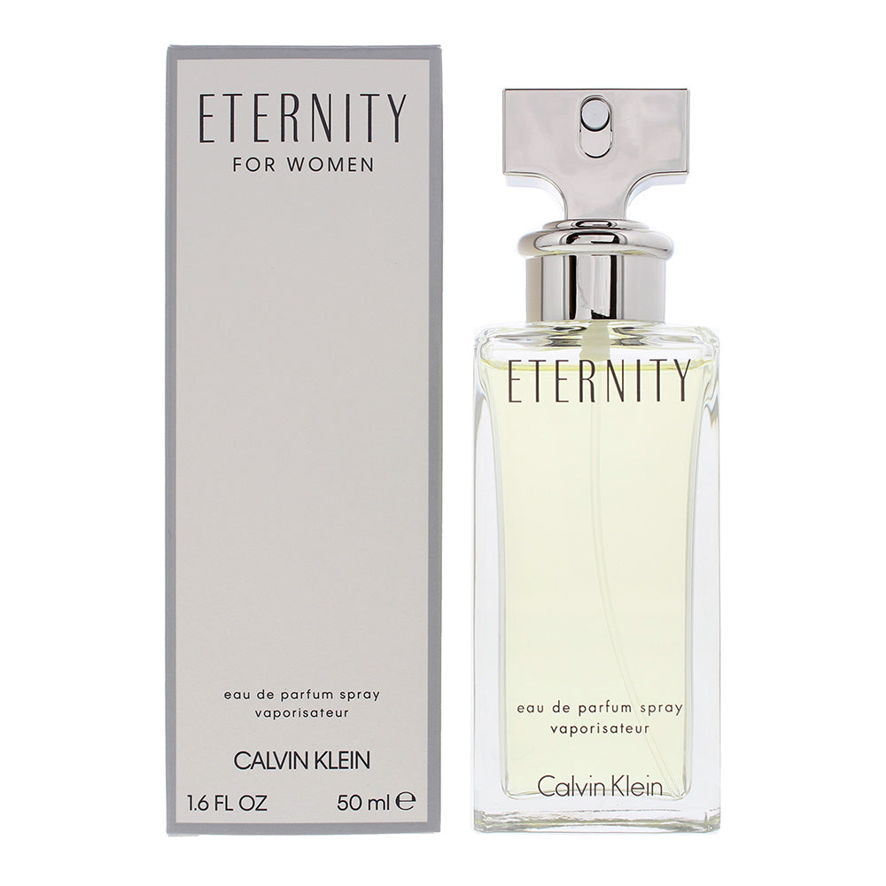 Calvin Klein Eternity Eau de Parfum 50mlA warm, soft and rather musky fragrance. ETERNITY is a classic and always will be.Fragrance Family: FloralTop Notes: Freesia, Mandarin, Sage, Green notes, Lemon blossomHeart Notes: Lily-o...