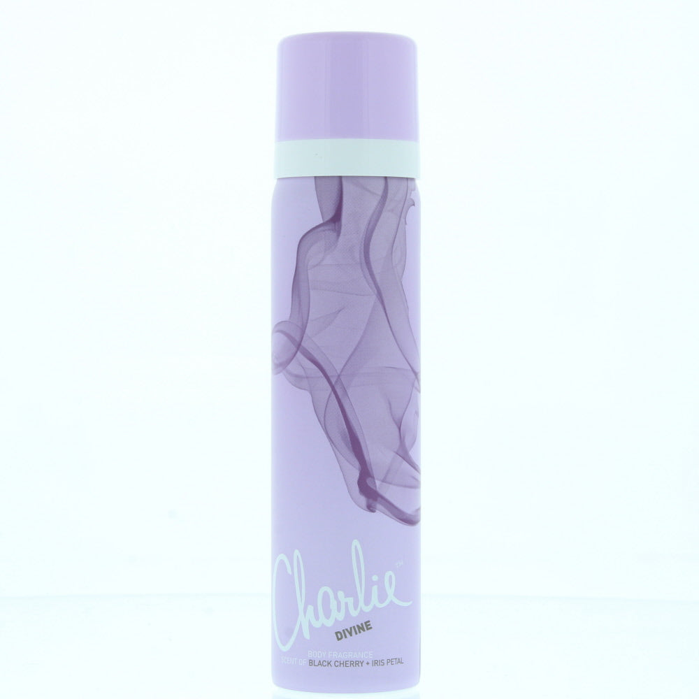 Revlon Charlie Divine Body Spray 75ml•A light refreshing and longlasting all over body fragrance that comes in a convenient size that can be slipped into your handbag to give your scent a lift during the day.