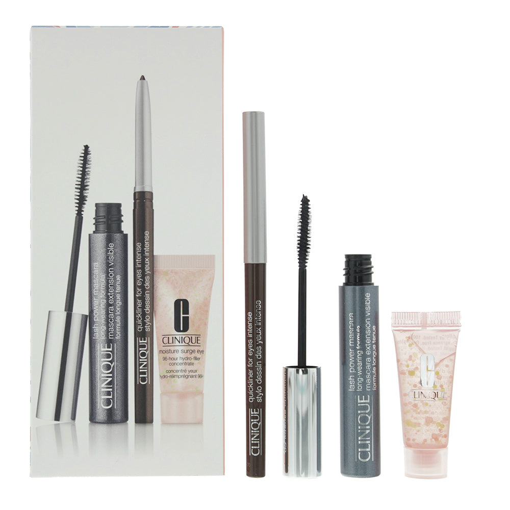 Clinique 3 Piece Gift Set: Mascara 6ml - Eyeliner 0.14g - Make-Up Remover Balm 15ml•Create a powerful look that stays put with this eye-opening trio.• The set includes: Lash Power Mascara 6ml Black Onyx – this lengthening smudg...