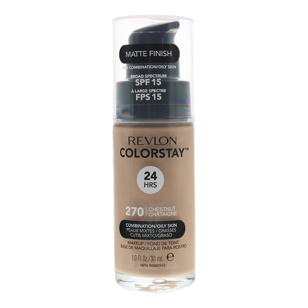 Revlon Colorstay Makeup Combination/Oily Skin Spf 15 270 Chestnut Foundation 30ml•Revlon Colorstay Makeup Combination/Oily Skin Spf 15 Chestnut Foundation control oil absorption and shine that delivers medium coverage with a co...
