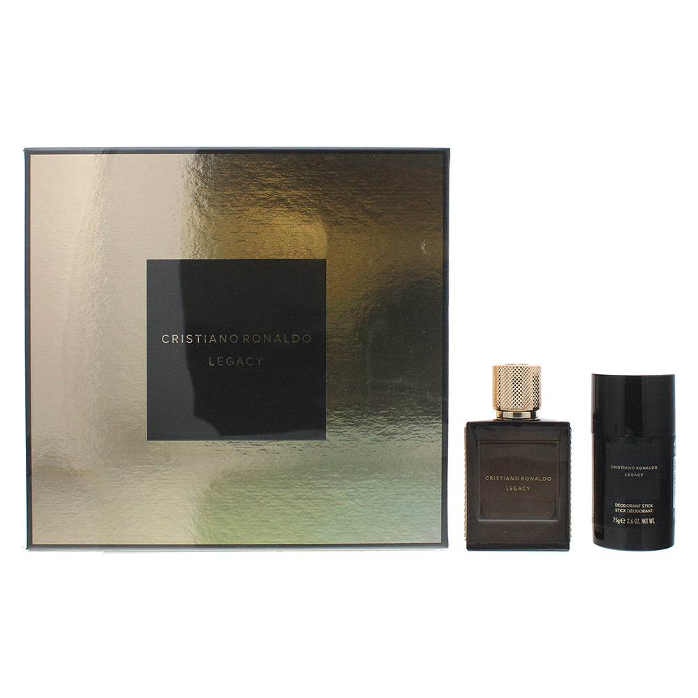 Cristiano Ronaldo Legacy Eau de Toilette Gift Set : Eau de Toilette 50ml - Deodorant Stick 75g•Cristiano Ronaldo Legacy is a woody aromatic fragrance for men.• Top notes: bergamot, cinnamon, green apple, lavender.• Middle notes...
