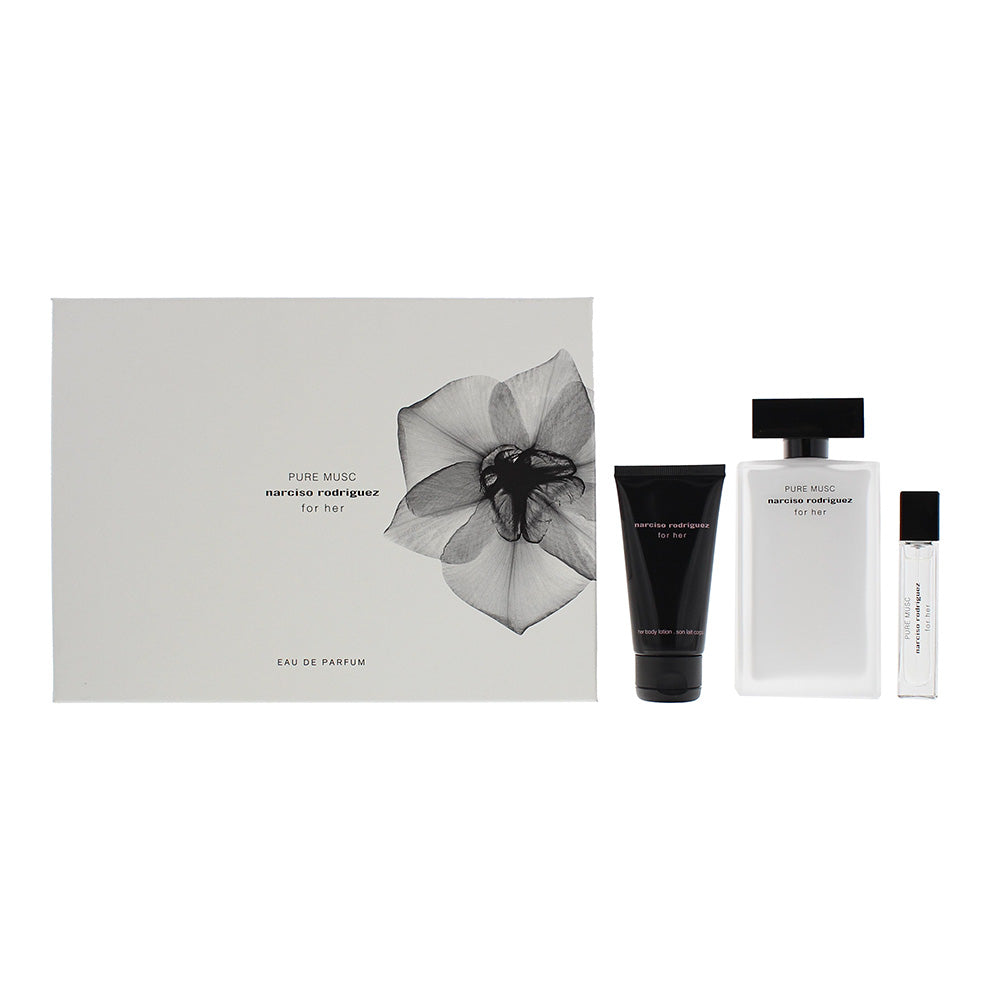 Narciso Rodriguez For Her Pure Musc 3 Piece Gift Set: Eau De Parfum 100ml - Body Lotion 50ml - Eau De Parfum 10ml•Pure Musc For Her is a floral woody musk fragrance for women, which was created by Sonia Constant and launched i...