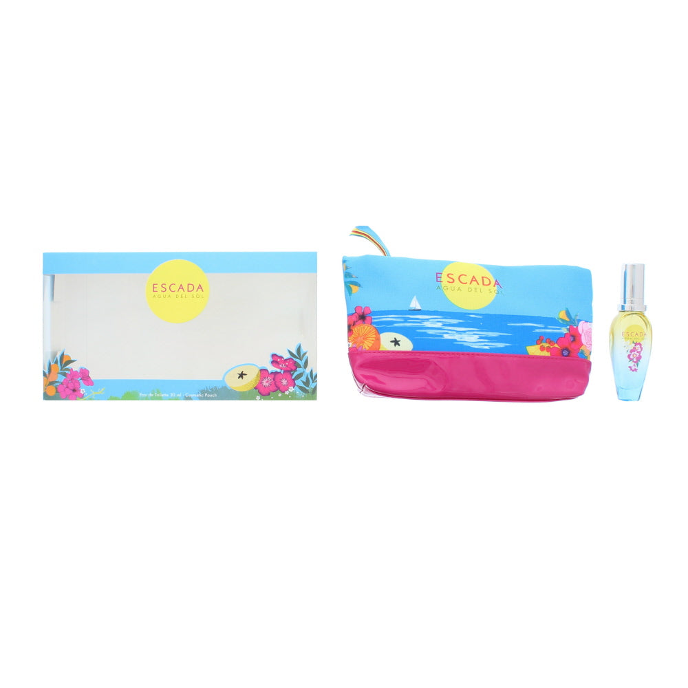 Escada Agua Del Sol Eau de Toilette Gift Set : Eau de Toilette 30ml - Cosmetic Bag•Agua del Sol by Escada is a floral fruity fragrance for women.• Top notes mandarin orange sorbet raspberry citruses ice cream pear pink pepper.•...