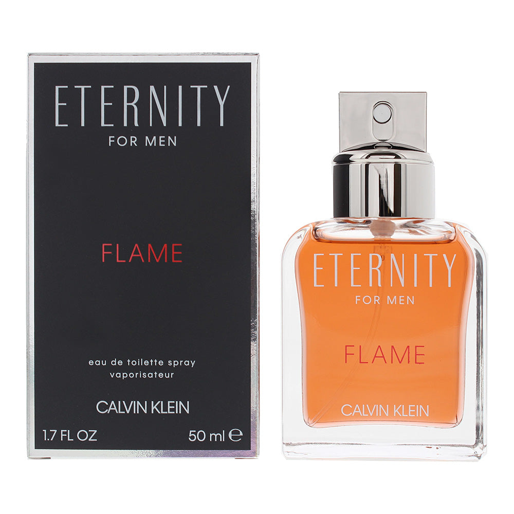 Calvin Klein Eternity For Men Flame Eau De Toilette 50ml•Eternity For Men Flame is an amber fougere fragrance for men created by Laurent Le Guernec and launched in 2019 by Calvin Klein.• The fragrance contains a top note of pin...
