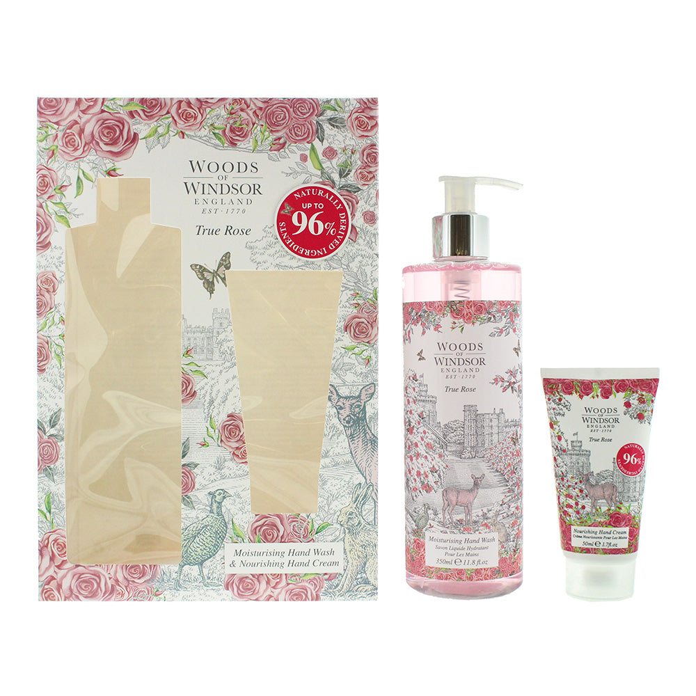 Woods Of Windsor True Rose 2 Piece Gift Set: Hand Wash 350ml - Hand Cream 50ml•This gift set features Woods of Windsor's True Rose Moisturising Hand Wash (provides a luxurious lather and leaves hands feeling clean, soft and del...