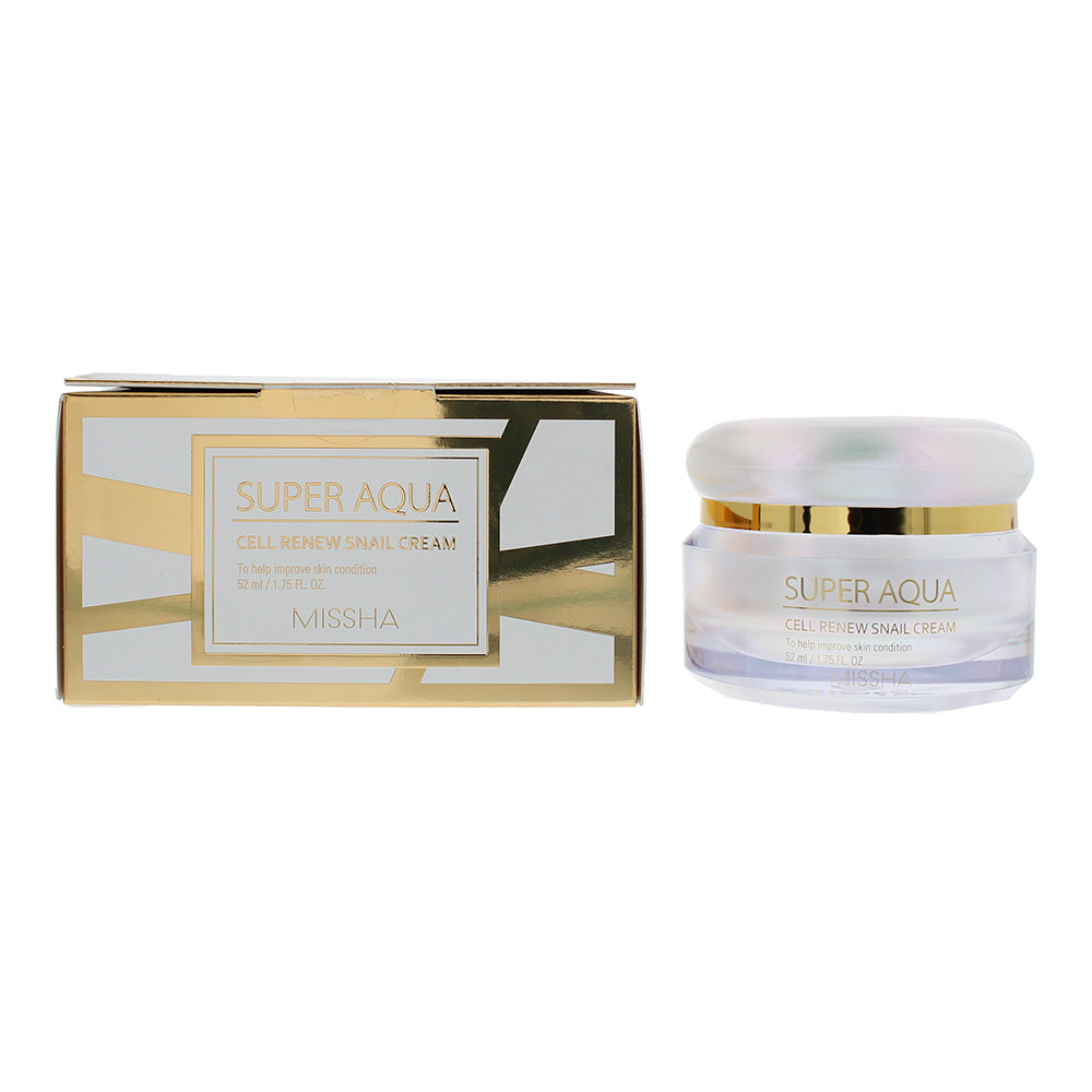 Missha Super Aqua Cell Renew Snail Face Cream 52ml•Formulated with Snail Slime, Baobab Tree Seed extracts and Deep Sea Water repairing cream helps to improve damaged, sagging, discoloured skin, leaving it nourished, hydrated a...