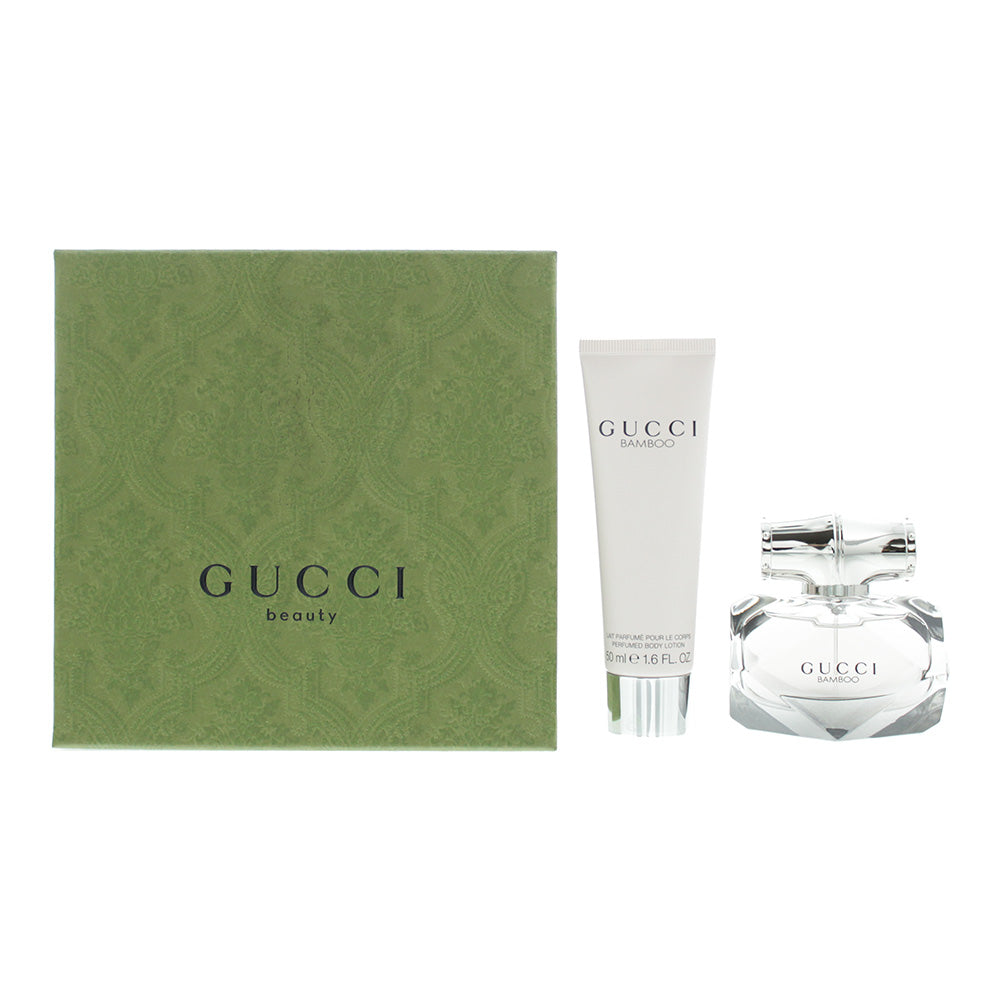 Gucci Bamboo Gift Set 30ml: Eau De Parfum 30ml - Body Lotion 50ml•Gucci Bamboo was launched in 2015 by Gucci as a Floral fragrance for women.• The top note of Gucci Bamboo is Bergamot, with middle notes of Casablanca Lili, Oran...