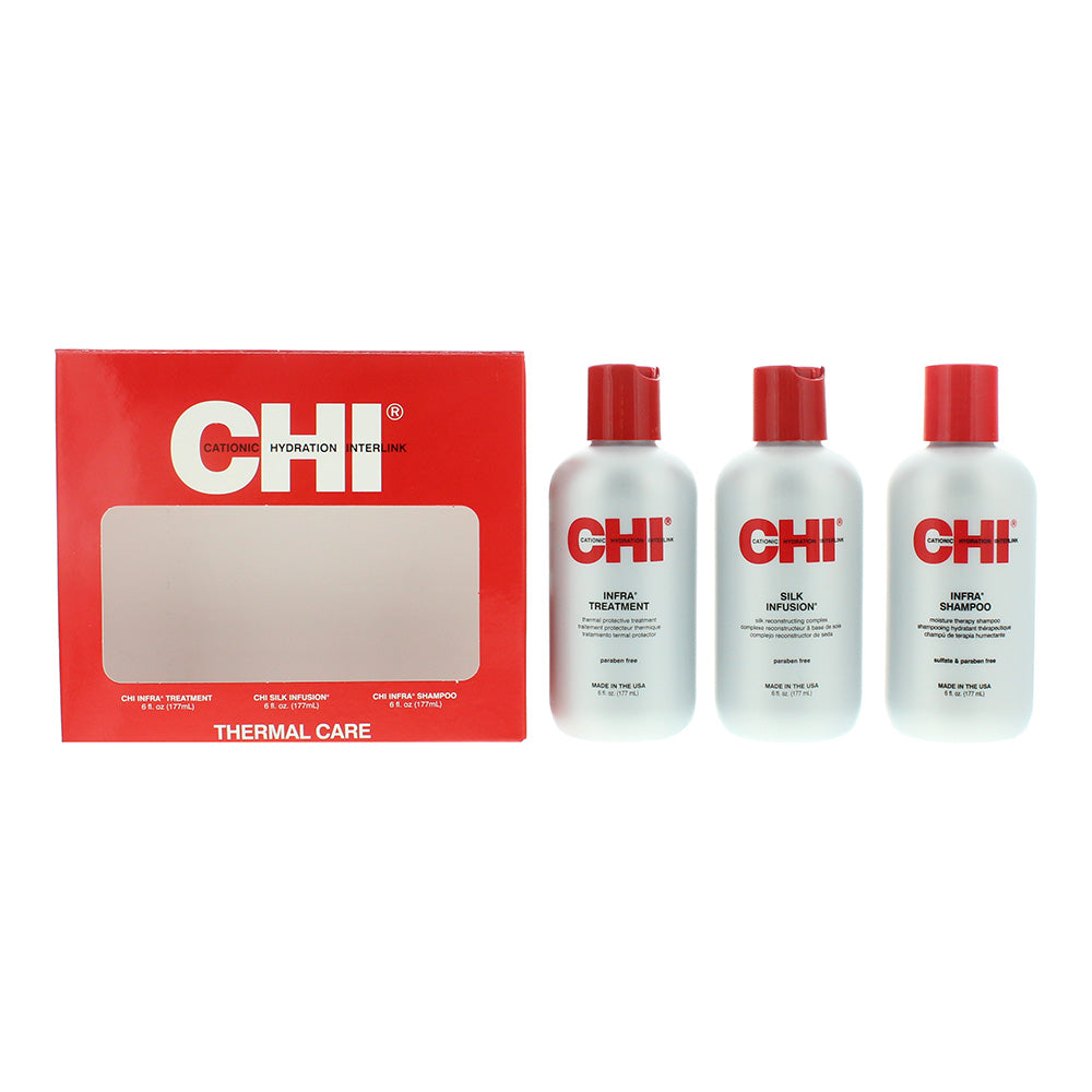 CHI Trio Kit 3 Piece Gift Set: Infra Shampoo 177ml - Infra Treatment 177ml - Silk Infusion 177ml•The CHI Trio Kit is a 3 Piece Gift Set bringing together 3 professional level hair care products from Chi's The set includes Chi's...