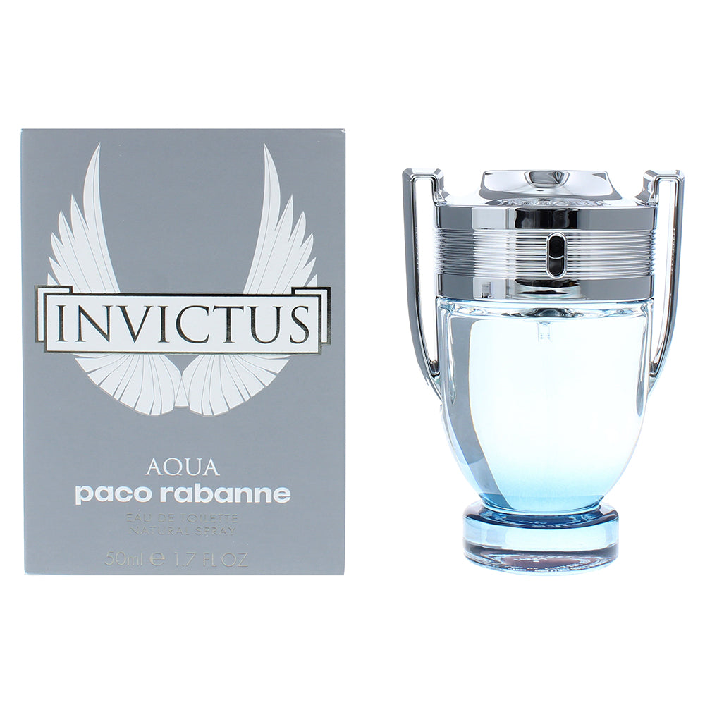 Paco Rabanne Invictus Aqua Eau de Toilette 50mlCosmetics•A wave of adventure delving into vivid accords of aquatic notes and woods.• Invictus Aqua by Paco Rabanne highlights an opening of grapefruit and violet leaves before div...