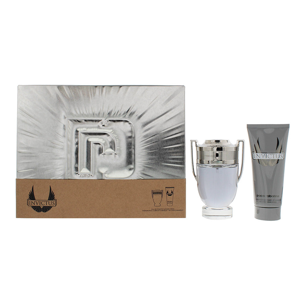 Paco Rabanne Invictus 2 Piece Gift Set: Eau De Toilette 100ml - All Over Shampoo 100ml•Paco Rabanne design house launched Invictus in 2013 as a citrus aromatic fragrance for men.• Invictus is a sporty and elegant fragrance that...