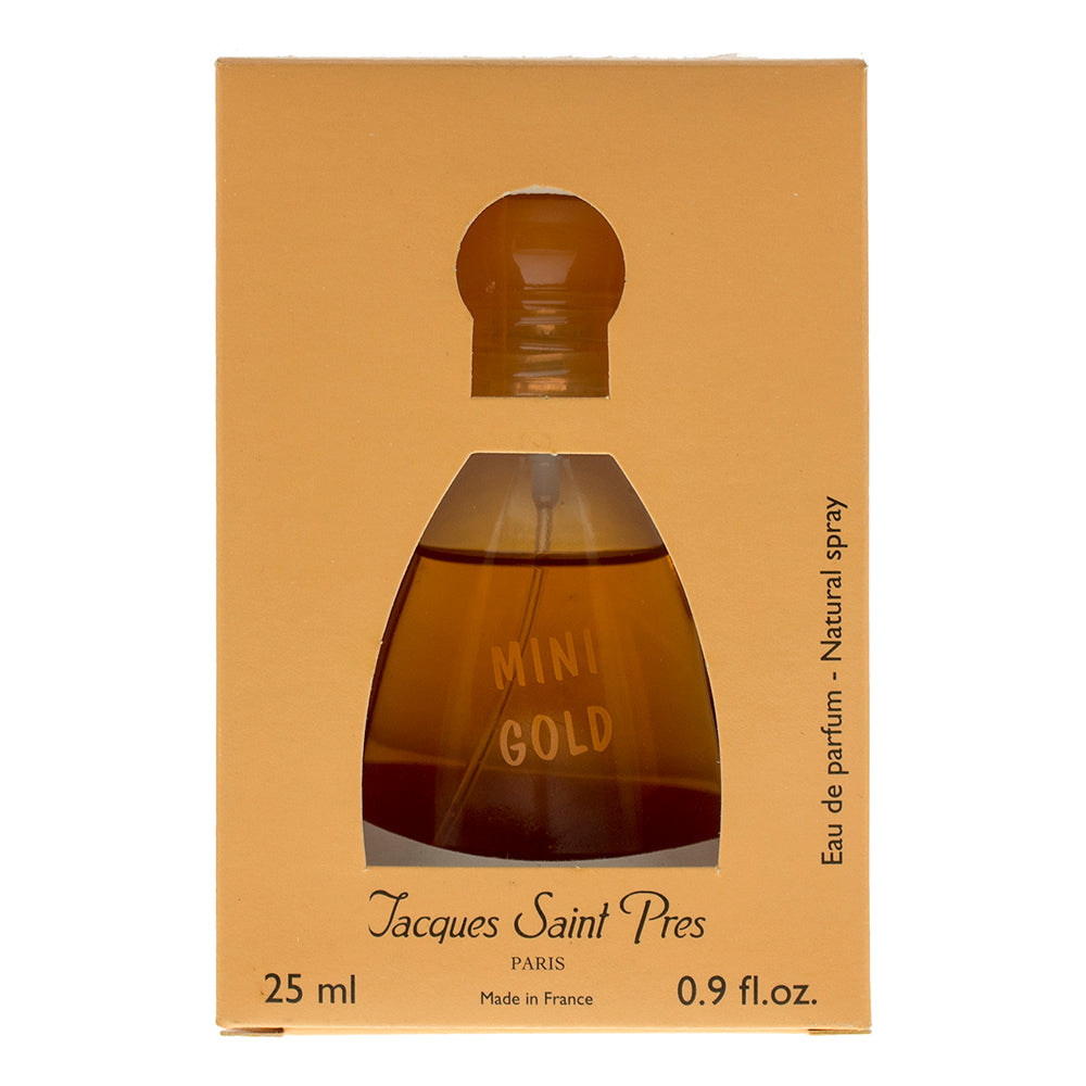 Jacques Saint Pres Mini Gold Eau de Parfum 25ml•Mini Gold by Jacques Saint Pres is a Floral Fruity Gourmand fragrance for women.• Top note are sandalwood and patchouli; middle notes are apricot leaf, mango and tangerine; base n...