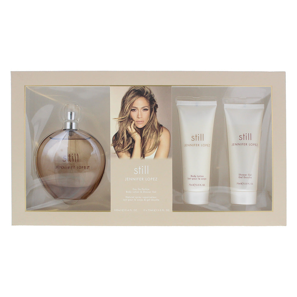 Jennifer Lopez Still 3 Piece Eau De Parfum 100mlShower Gel 75mlBody Lotion 75ml•Still by Jennifer Lopez is a floral fragrance for women.• Top notes: white pepper, mandarin orange, rice, apple, Earl Grey Tea.• Middle notes: hone...