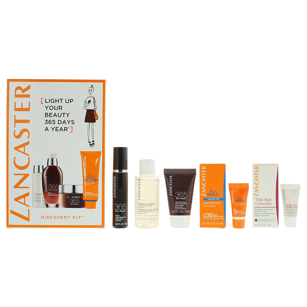 Lancaster Discovery Kit Suncare Gift Set : Express Cleanser 30ml - Retinol-In-Oil 3ml - Serum 10ml - Day Cream 15ml - Cream 3ml•Light up your beauty 365 days a year is a beautiful discovery kit from the House of Lancaster.• It ...