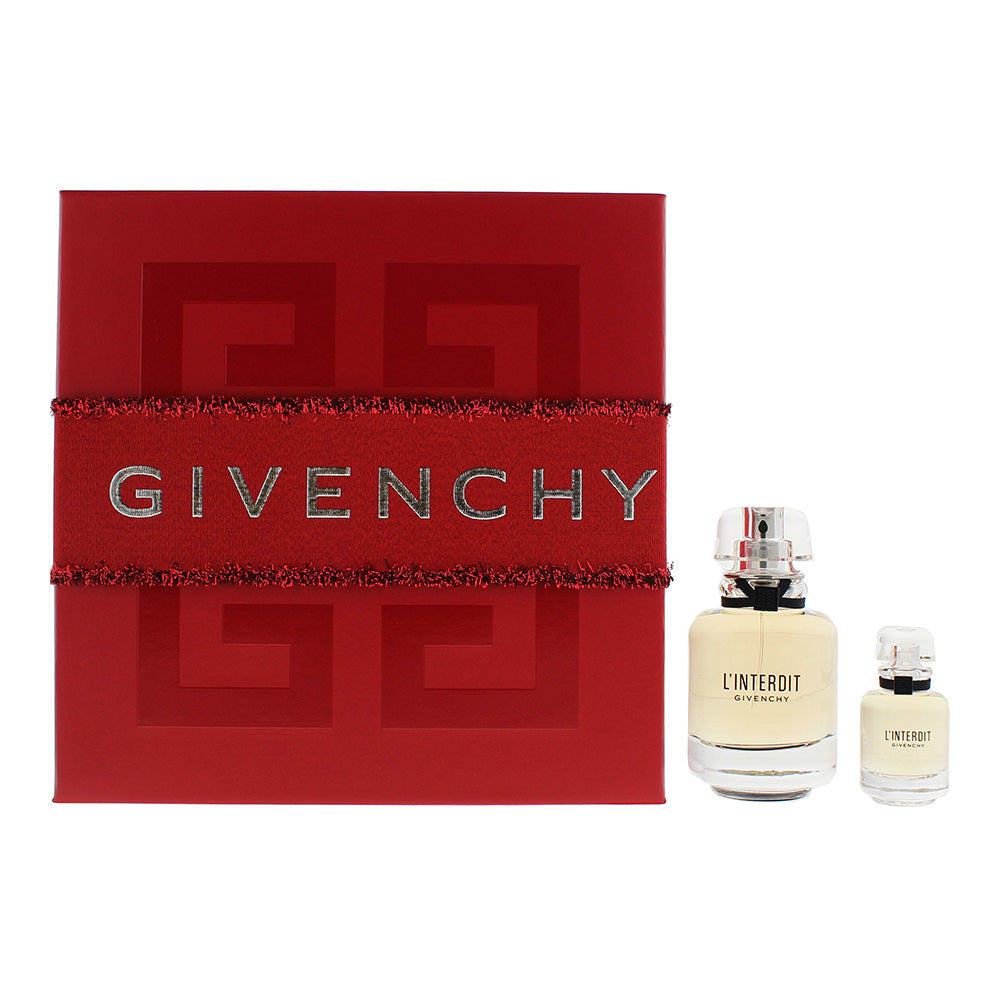 Givenchy L'interdit Eau De Parfum 2 Piece Gift Set: Eau De Parfum 50ml - Eau De Parfum 10ml•L'Interdit Eau de Parfum by Givenchy is an oriental floral fragrance for women.• Top notes are bergamot and pear.• Middle notes are tub...