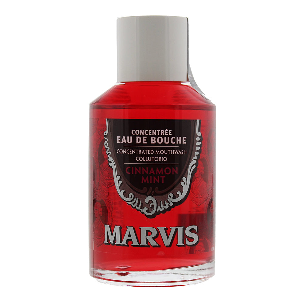 Marvis Cinnamon Mint Mouthwash 120ml•Marvis Cinnamon Mint Mouthwash is a uniquely flavoured mouth rise, that tastes of Cinnamon.• The mouthwash is alcohol free, and leaves mouths feeling fresh and clean.