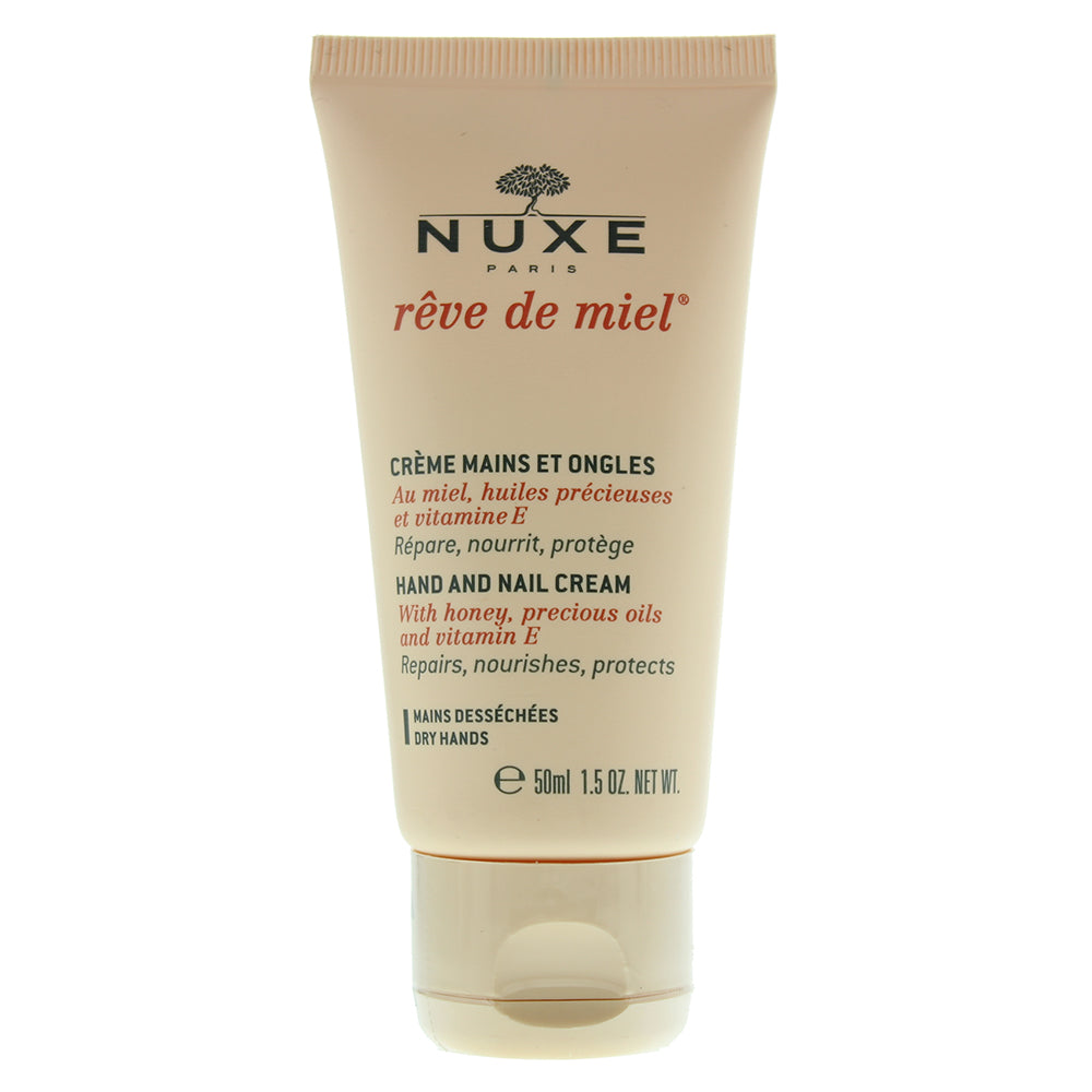 Nuxe Rêve De Miel Hand Cream 50ml•Enriched with precious oils, honey and vitamin E, this luxurious hand and nail cream soothes nourishes and repairs dry or damaged hands and is a necessity especially in those cold winter months.