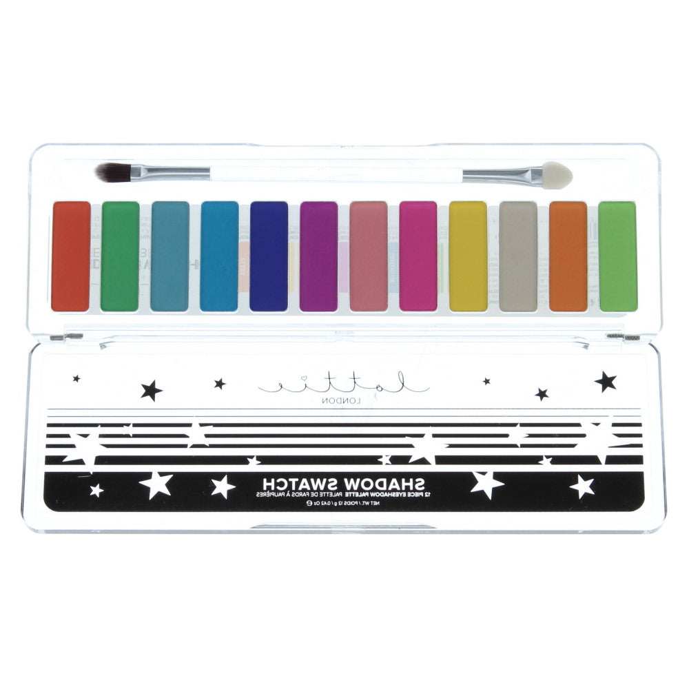 Lottie London Shadow Swatch The Rainbows Eye Shadow Palette•Lottie Londons Shadow Swatch Eyeshadow Palettes are a mixture of beautiful shimmer and matte shades that have a smooth texture for easy blending.• With 12 colours in e...